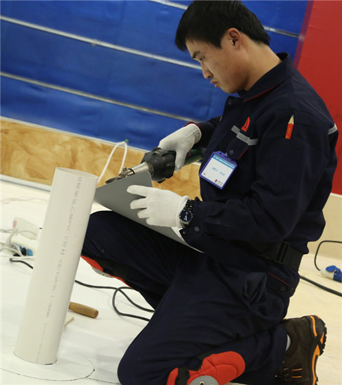 比赛现场,徐龙潇进行管根节点处理