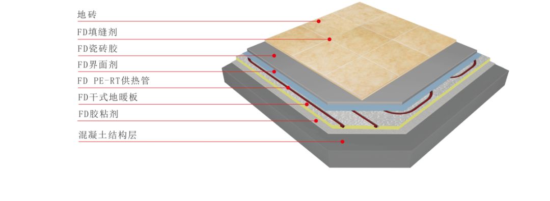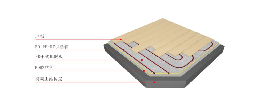 孚达高强度干式地暖模块压缩强度达到1200kPa以上,整体系统省掉12mm的水泥承压板,从而最大程度的节约构造层厚度,是新一代干式地暖系统。