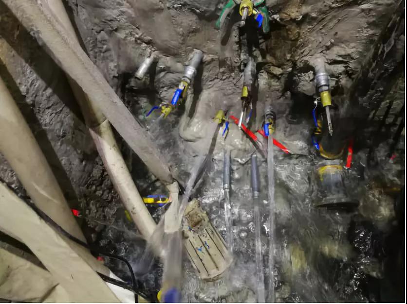 大量涌水和少量涌水的核心区别在于,分水和注浆阻水不同。少量涌水,可以直接采用CG-205注浆。因为水压较小,反应时间充分(可适当延长混合路径),可以直接堵住。而大量涌水,水压很大。单纯的CG-P205根本来不及反应就会被冲走。