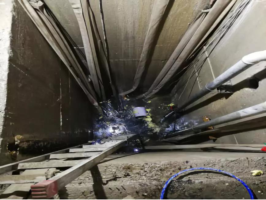 垃圾清理完成后,需要在引流管周边浇筑混凝土施压。电梯井如果设备可以拆除的话,则可以浇成一个平面。如果设备无法拆卸,则需要支模处理。混凝土的浇筑,是为了增加引流管外围的强度,起到辅助的作用。
