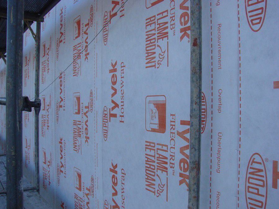 特卫强®防火型透汽膜是采用防火阻燃新技术的专利产品,采用无卤阻燃涂层,减少燃烧低落与烟雾的形成,是一个质量轻,着火自熄的阻燃透汽膜,可提高建筑的安全性,这种阻燃型的防水透汽膜可以帮助缓减或阻止火焰的蔓延,增加逃生者的疏散时间,也有助于提高建筑墙体构件的防火等级。