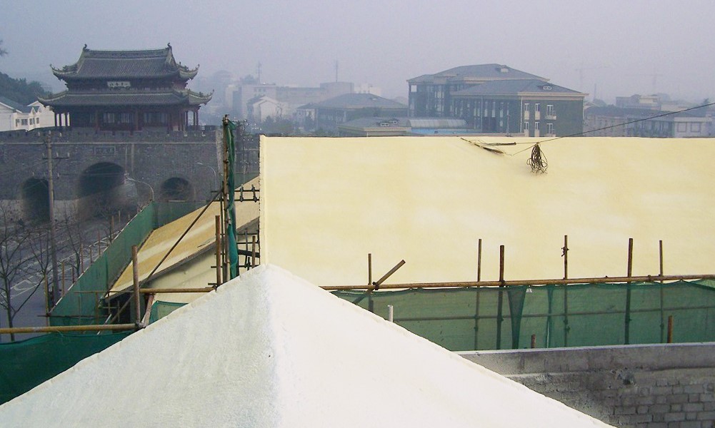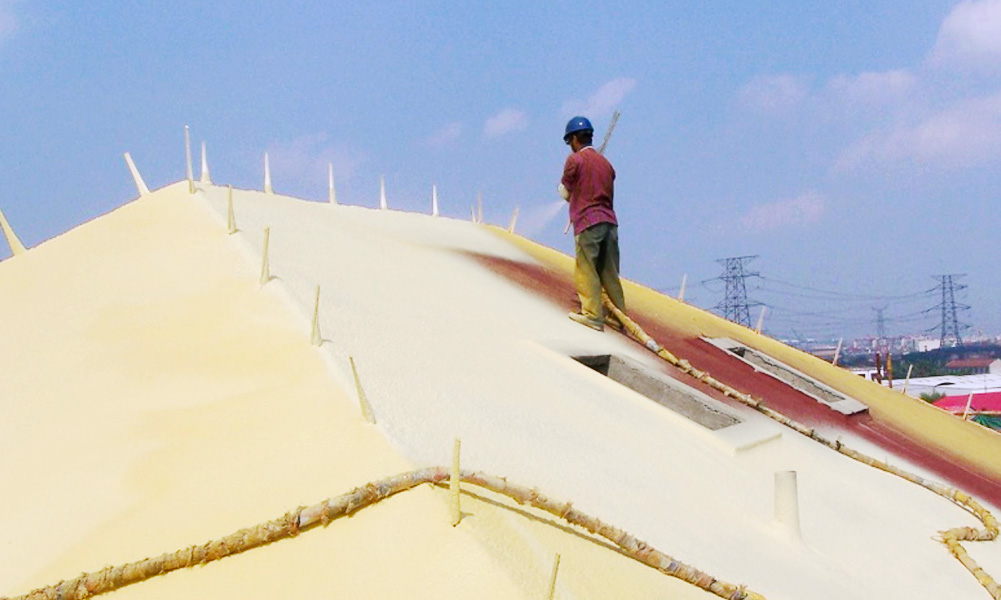 越大屋面保温防水一体化系统,由喷涂硬泡聚氨酯保温防水一体化材料与保护面层构成。通过现场喷涂工艺,在屋面形成连续、无接缝的壳体,有效消除冷热桥效应,实现保温防水一体化功能。