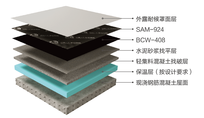SAM-924纤维增强型高分子膜基自粘沥青防水卷材常见的防水系统方案包括: